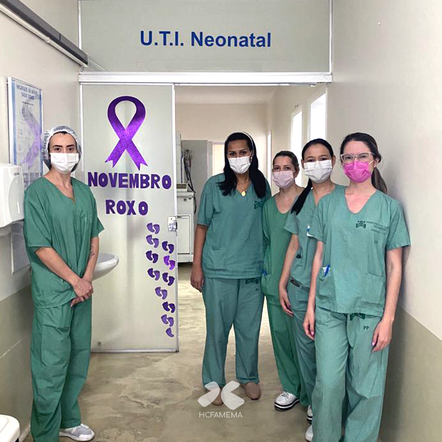 Durante este mês, o Hospital Materno Infantil do HCFAMEMA foi decorado com informações sobre o Novembro Roxo, e com “pegadas” que simbolizam a caminhada que os bebês fazem até alcançarem a tão esperada alta hospitalar – o dia em que finalmente poderão ir para casa. Durante esses dias, os pais dos bebês internados também recebem todo carinho e atenção dos colaboradores por meio de músicas e frases motivacionais durante o horário de visita aos bebês – verdadeiros guerreiros e heróis na batalha pela vida.