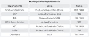 NOVOS LOCAIS – Departamentos administrativos em novas alocações