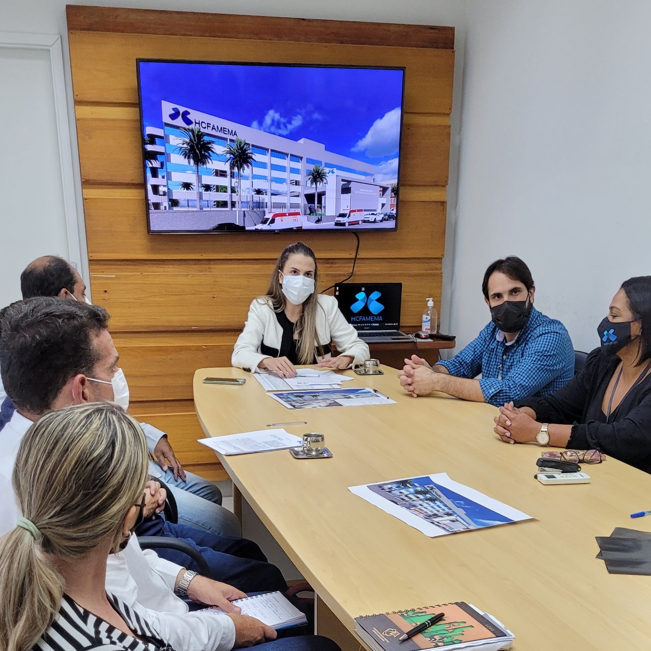 A superintendente do HCFAMEMA, Paloma Libanio, conduziu a reunião e assinatura do contrato, firmado ainda pelo chefe de Gabinete do HCFAMEMA, João Paulo Kemp Lima, pelo diretor técnico, Gabriel Loeve, e pela diretora financeira, Marília Silva.