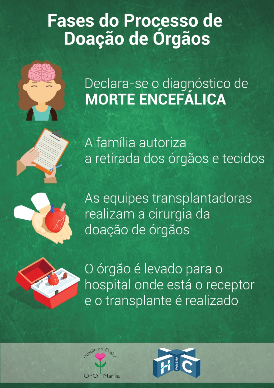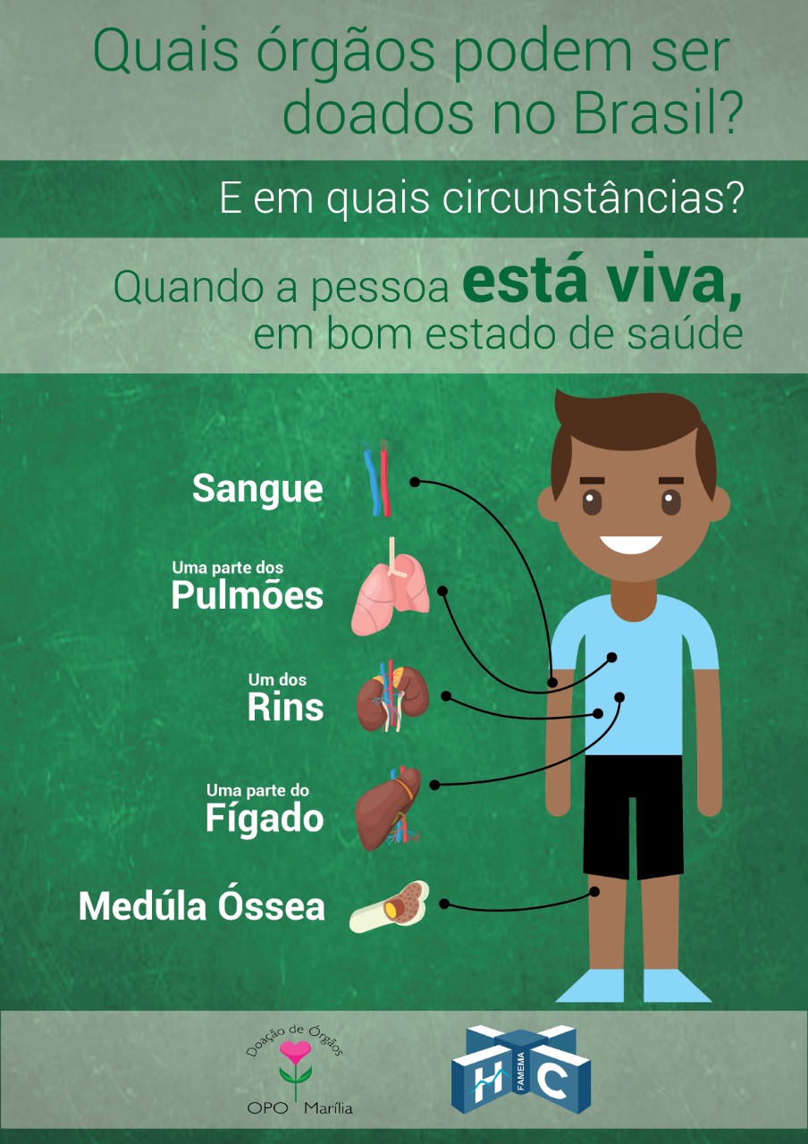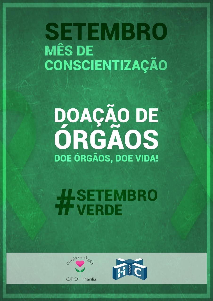 O Núcleo de Organização de Procura de Órgãos (OPO) do Hospital das Clínicas da Faculdade de Medicina de Marília – HCFAMEMA realiza de 21 a 30 de setembro uma exposição interna de cartazes informativos sobre a doação de órgãos no saguão do andar S da unidade HC I, próximo ao relógio de ponto dos funcionários.