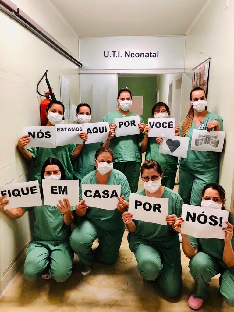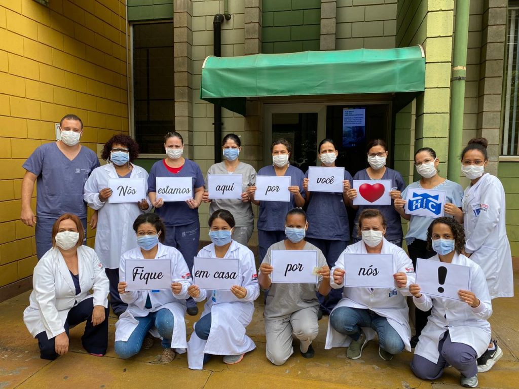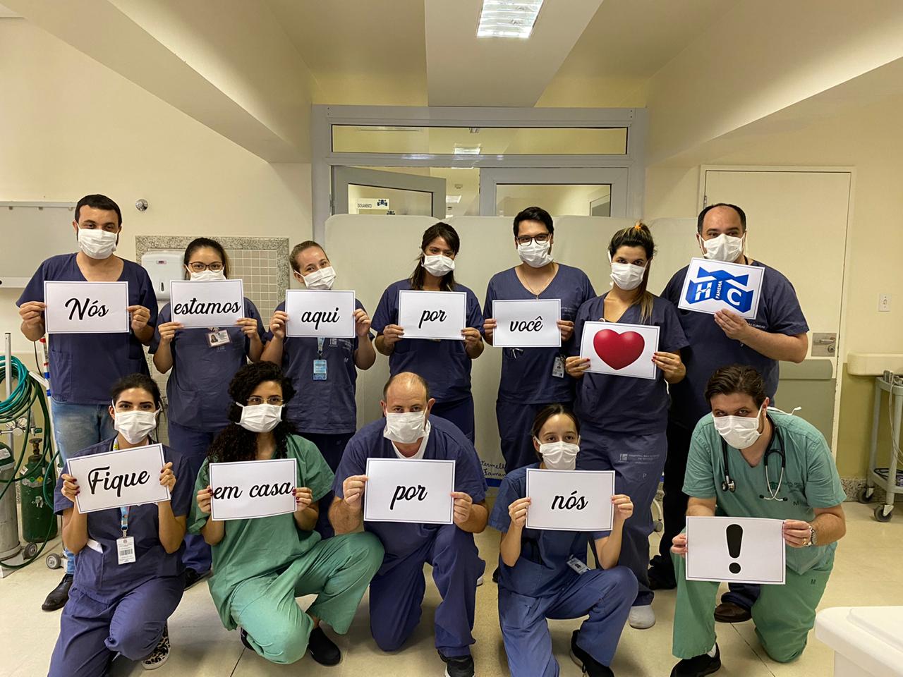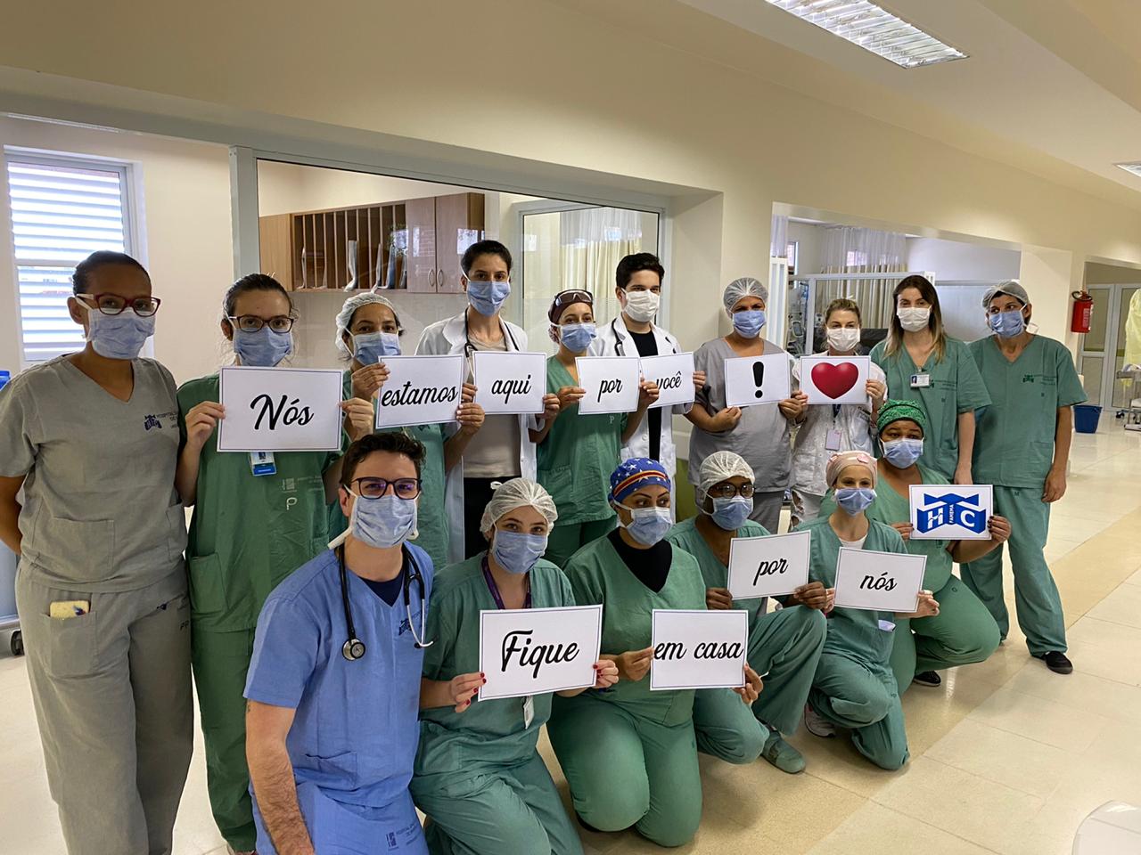 Médicos, enfermeiros e profissionais do setor administrativo do Hospital das Clínicas da Faculdade de Medicina de Marília – HCFAMEMA fizeram fotos para pedir à população que fique em casa como forma de proteção ao novo coronavírus (COVID-19). “Nós estamos aqui por você. Por favor fique em casa por nós”. É a mensagem repassada pelos profissionais. As fotos com profissionais de diversos setores e departamentos do hospital foram publicadas nas redes sociais da instituição nesta quinta-feira (19).