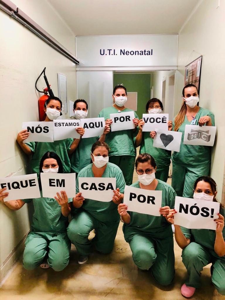 A foto segue a tendência de pedidos de médicos e enfermeiros de hospitais ao redor do mundo. O #fiqueemcasa é uma campanha internacional.