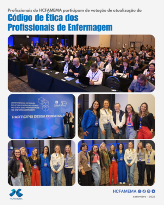 As profissionais do HCFAMEMA, Márcia Parente da Silva Lamante e Mayara Vieira da Silva, participaram como delegadas da Conferência Estadual para Atualização do Código de ética dos profissionais de Enfermagem (CEPE), organizada pelo Conselho Regional de Enfermagem de São Paulo (Coren-SP), nos dias 23 e 24 de setembro de 2025, em São Paulo.