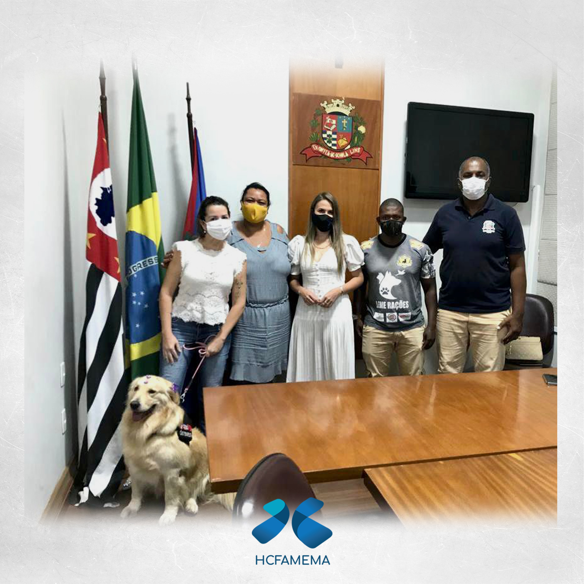 A Superintendente do HCFAMEMA, Dra Paloma Libanio, e a Diretora do Núcleo de Regulação de Acesso do HCFAMEMA, Milena Diniz de Freitas, que é a tutora da Minnei (Golden Retriever) e idealizadora do projeto, participaram da sessão ordinária. Estiveram presentes ainda, além dos demais vereadores, a Secretária Municipal da Saúde de Lins, Silvia Cristina Vasconcelos Cardoso e o adestrador de cães que atuará nos hospitais em Lins, o Jhoninha.