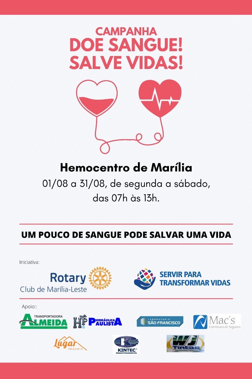 É o caso do Corpo de Bombeiros, que criou a campanha “Sangue Bom”, a academia de ginástica Espaço Saúde, em ação interna com seus alunos, o Rotary Club Marília Leste com a campanha “Doe Sangue Salve Vidas” e a Escola Adventista de Marília com a campanha “Meu pai dá o sangue”.