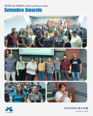 O Serviço Especializado em Segurança e Medicina do Trabalho da FAMAR (SESMT-FAMAR) realizou na quarta-feira, 24 de setembro de 2025, a palestra “Acolhimento e escuta na prevenção do suicídio”, com a psicóloga clínica suicidologista Luciana Handa, também coordenadora do Grupo de Prevenção ao Suicídio de Marília. A palestra foi para colaboradores do HCFAMEMA, FAMEMA, FAMAR e FUMES.