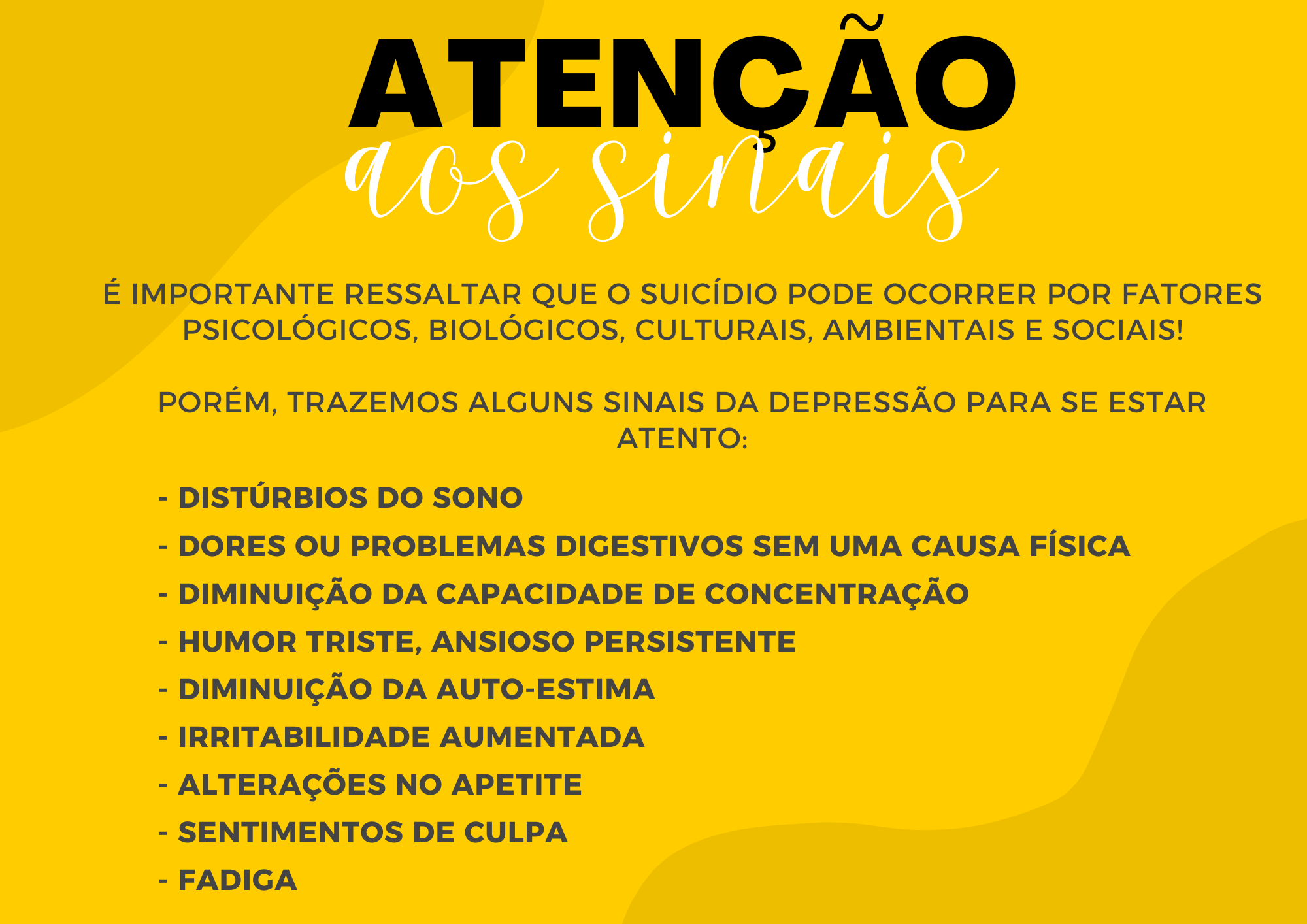 Sabemos que cuidar da mente é fundamental para uma vida plena e saudável. Convidamos você a vestir o amarelo da esperança e se juntar a nós nessa jornada de empatia, apoio e compreensão mútua.