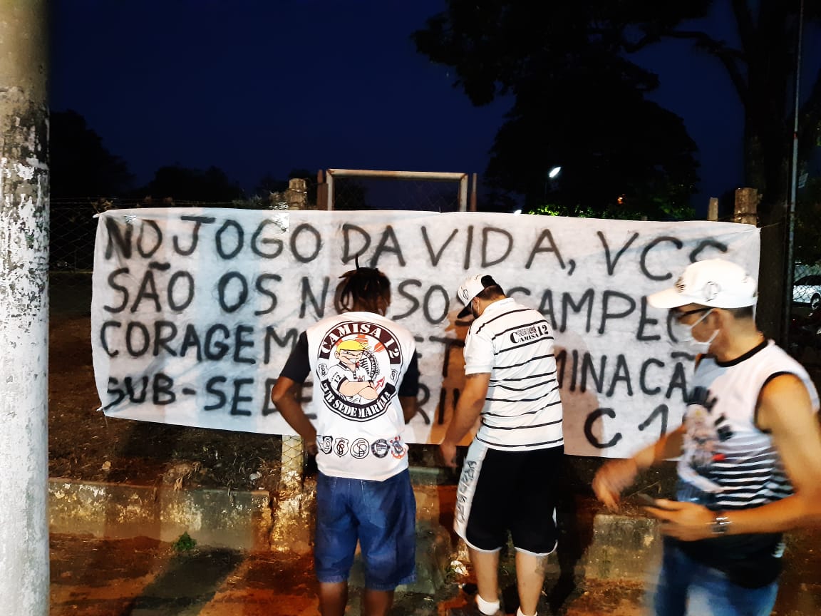As palavras “coragem e “determinação”, que formam a ideologia principal da torcida, estavam escritas na maioria das faixas. A diretoria da Camisa 12 informou que foi tomado o cuidado em não expor os participantes da ação, proibindo a participação de sócios que estejam no grupo de risco, e disponibilizando máscaras e álcool em gel durante o ato.