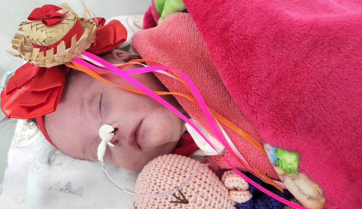 A UTI Neo do Hospital das Clínicas Materno Infantil entrou no clima de festa julina. Os bebês receberam adereços como roupas típicas, chapéus de palha e laços. A ação foi preparada com carinho pelas equipes de enfermagem com o consentimento dos pais.